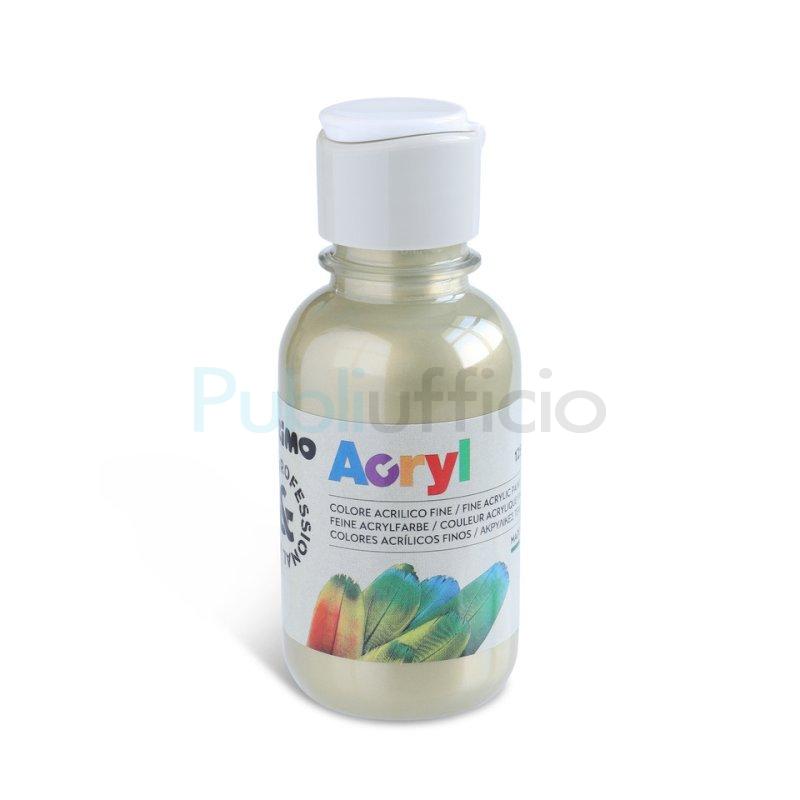 Colore acrilico fine in bottiglia in PET da 125 ml, con tappo dosatore. È un colore ad acqua ad alta concentrazione di pigmento ed emulsione acrilica, di alta qualità, opaco e molto coprente che una volta asciutto è permanente. Si stende facilmente e asciuga in bella superficie rimanendo elastico, di tono vivo e luminoso, piacevole al tatto e resistente. È utilizzabile su qualsiasi substrato, si presta bene alle attività pittoriche proprie di questa tecnica versatile e ricca di possibilità creative. È adatto a tecniche decorative e hobbistiche quali il découpage. È applicabile sulle pareti mediante stencils. I risultati sono di ottimo effetto e durata. Le tinte disponibili in gamma utilizzate pure offrono colori intensi e d’effetto. Colore bronzo.