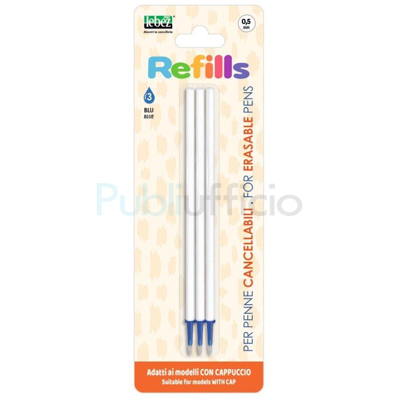 Conf. 12 blister da 3 refill inchiostro cancellabile Lebez blu per penne con cappuccio 0,5 mm - 81807