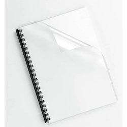 Copertine trasparente A4 in PVC ideali per uso come copertina frontale per i vostri documenti rilegati. Per uso con tutte le rilegatrici a dorso metallico e plastico. Spessore: 150 micron. Colore: trasparente. Confezione da 100 pezzi.