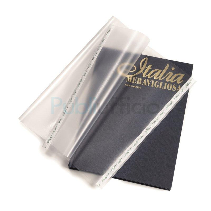 Copertina coprilibro senza ftalati. Realizzata in PVC goffrato antiriflesso ad alto spessore: 180 μm. Disponibile con colorazione trasparente neutra. Dotata di bande laterali adesive. Formato 50 x 31 cm. Confezione composta da 25 pezzi. Made in Italy.