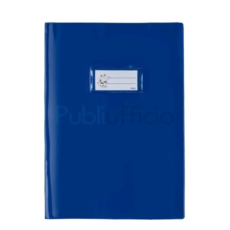 Coprimaxi C25E Francese realizzati in PVC con spessore 250 μm con alette ripiegate da 18 cm, portanome e listelli blocca quaderno centrali. Finitura coprente laccata lucida. 100% riciclabili. Adatti per quaderno A4 - formato 21x29,7 cm. Colore blu.