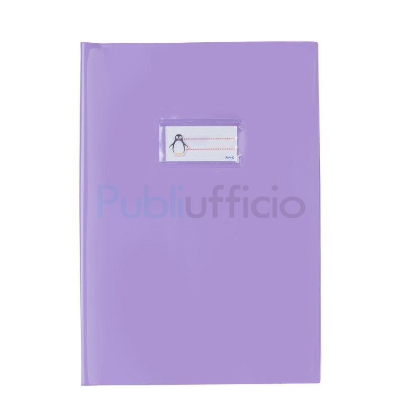Coprimaxi C25E Francese realizzati in PVC con spessore 250 μm con alette ripiegate da 18 cm, portanome e listelli blocca quaderno centrali. Finitura coprente laccata lucida. 100% riciclabili. Adatti per quaderno A4 - formato 21x29,7 cm. Colore lilla.