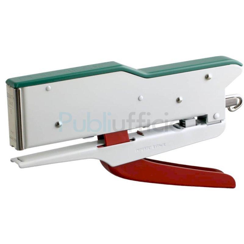 Cucitrice interamente realizzata in metallo. Verniciatura altamente resistente all'usura ed alla corrosione. Collaudata singolarmente e garantita a vita per difetti di fabbricazione. Capacità di carica 100 punti. Cuce a punto chiuso fino a 15 fogli con punti 6/4 e fino a 30 fogli con punti 6/6. Spingi punti estraibile. Dispositivo brevettato anti-inceppamento. Verniciata con i colori della bandiera italiana.