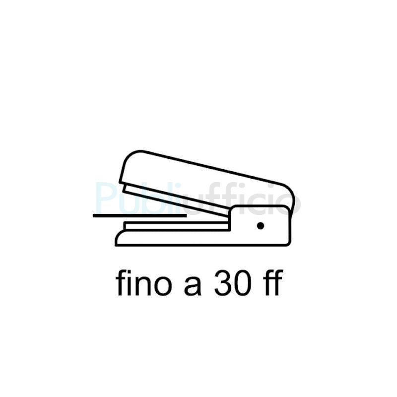 Cucitrice con corpo e parti meccaniche in metallo e cappuccio trasparente colorato in plastica ABS antiurto. Verniciatura altamente resistente all’usura ed alla corrosione. Collaudata singolarmente e garantita a vita per difetti di fabbricazione. Capacità di carica 200 punti. Cuce a punto chiuso fino a 15 fogli con punti 6/4 e fino a 30 fogli con punti 6/6. Caricamento punti dall’alto. Dispositivo brevettato anti-inceppamento.