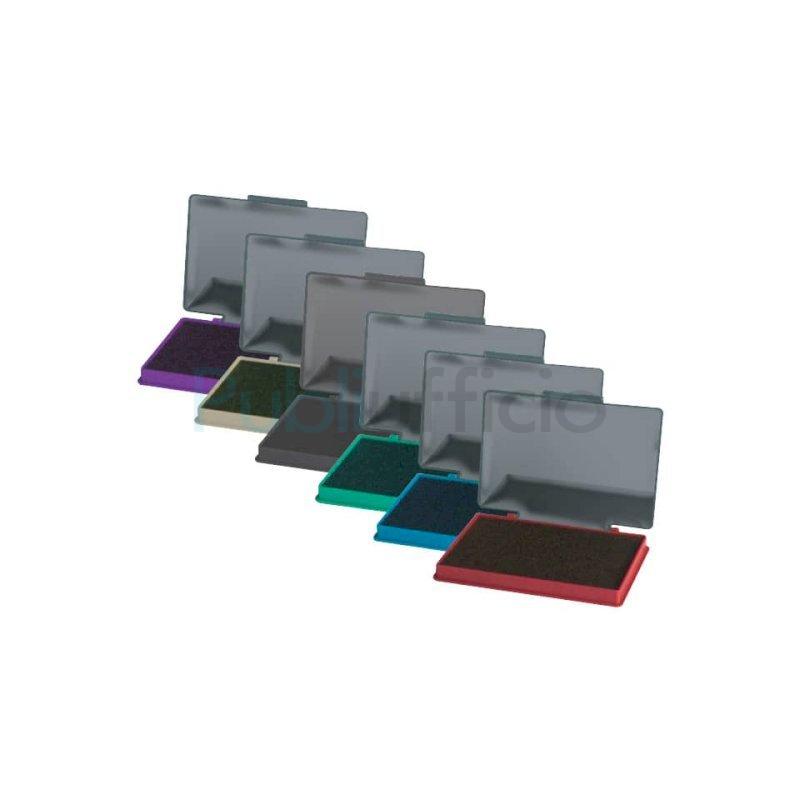 Cuscinetto per timbri pre-inchiostrato in astuccio di metallo. Dimensioni 11 x 7 cm. Colore: blu.