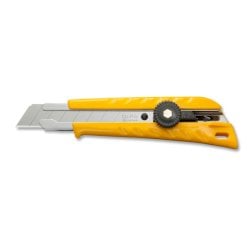 Cutter Olfa in blister lama 18 mm e corpo in metallo stampato rivestito in resina termoplastica ad alto spessore. Sistema di bloccaggio a vite per regolare la posizione della lama. Guida protettiva della lama in acciaio inox per tagli sotto sforzo. Ideale per il taglio di materiali spessi e pesanti come cartongesso, grafite, linoleum, moquettes, materiali isolanti ed altri materiali da costruzione. Colore giallo.