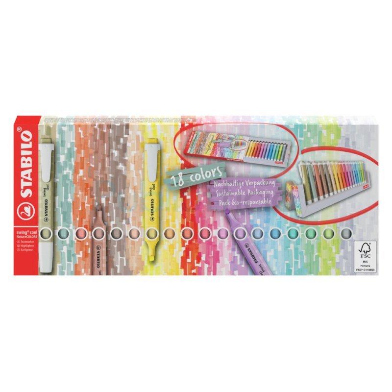 Desk set Evidenziatori Stabilo Swing® Cool NatureColors - 18 colori assortiti 275/18-02-5