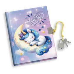 Diario dei segreti composto da 80 pagine con copertina glitterata, lucchetto e 2 chiavi. Disponibile in 3 soggetti unicorno assortiti.