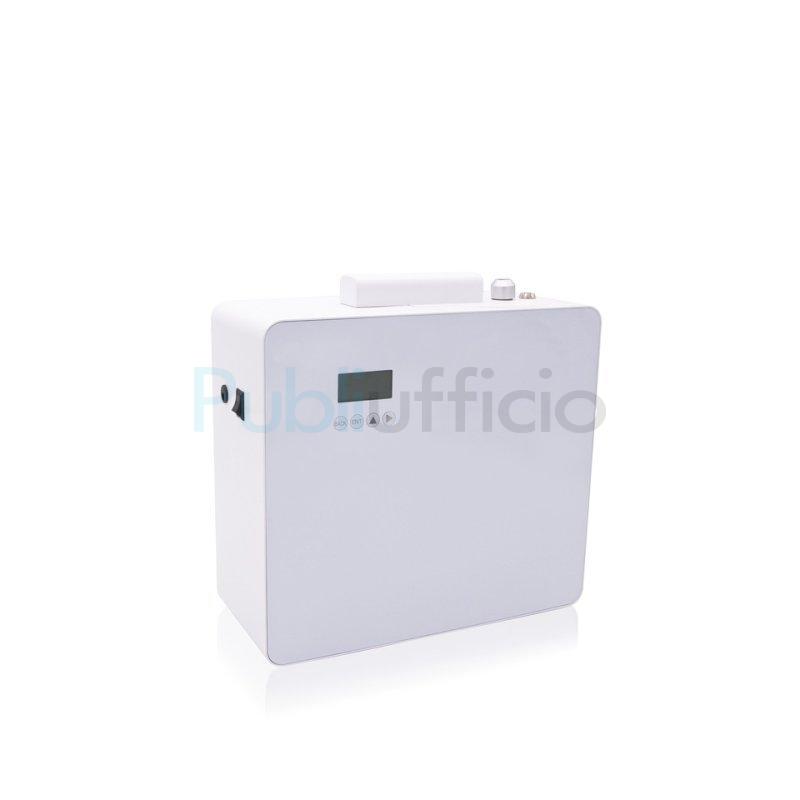 Heaven Scent Diffuser è un diffusore di fragranze con sistema Venturi progettato per garantire la perfetta diffusione in ambienti di dimensioni medio grandi con o senza canalizzazione. Dalla forma compatta e lineare può essere appoggiato su qualsiasi superficie, appeso alle pareti, oppure nascosto se collegato con impianti di ventilazione canalizzati (UTA). Heaven è programmabile direttamente da display e può essere controllato con Wi-Fi, per garantire una diffusione costante ed efficiente della fragranza anche negli ambienti più grandi. Capacità di diffusione: 2500 - 4000 m³. Heaven è progettato per: grandi ambienti canalizzati, ampie aree pubbliche, hall di hotel, spazi comuni degli uffici o delle strutture ricettive, SPA, centri fitness e grandi stores. Alimentazione: 12 V - 16 W. Peso: 4,2 Kg. Dimensioni: 280 x 120 x H.279,5 mm. Capacità serbatoio: 800 ml.
