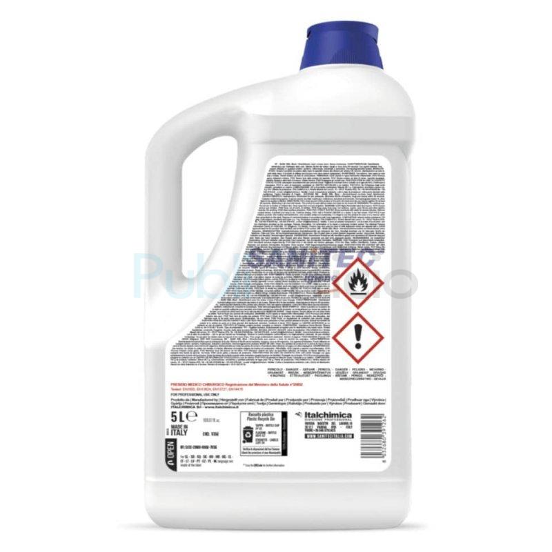 Disinfettante mani a base alcol senza risciacquo SANI GEL MED 5 Lt. Presidio medico chirurgico. Disinfettante idroalcolico per l’antisepsi della cute. Elimina 99,9% dei batteri, funghi e virus entro 60 secondi. Con agenti idratanti. Può essere utilizzato in qualsiasi ambito: sanitario, istituzionale, industriale e domestico. Dosare il prodotto sul palmo in quantità idonea alla frizione per almeno 60 secondi, distribuendolo su tutte le parti della mano. Il prodotto si utilizza senz’acqua e non deve essere risciacquato. Aspetto: gel trasparente incolore. PH: 6,8 +/- 0,5. Peso specifico [g/ml]: 0,865 +/- 0,020. 100 g di prodotto contengono: Etanolo g 68,7. Coformulanti, emollienti e acqua q.b. a g 100.