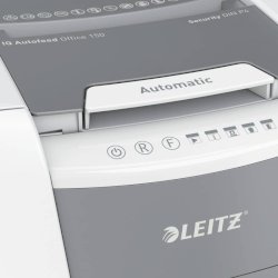 Il distruggidocumenti Leitz IQ è completamente automatico con un'esclusiva funzione di svuotamento pulito. Così intelligente che lavora da solo senza fare rumore, basta inserire la risma di carta (inclusi punti e graffette), chiudere il coperchio e si potrà andare avanti con la propria giornata. Ideale per piccoli uffici. Massima sicurezza e prestazioni eccellenti sono garantite con questo distruggidocumenti con meccanismo anti inceppamento, silenzioso e con ciclo di lavoro lungo (30 min). Distruggi automaticamente fino 150 fogli A4 in frammenti con un livello di sicurezza P4 (4 x 30 mm) rilasciati nell'ampio cestino da 44 L. Funzionamento semplice grazie ai comandi touch.