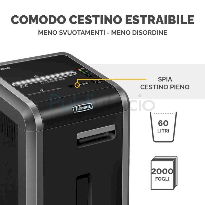 Distruggidocumenti uso frequente FELLOWES Powershred 225Mi P-5 60L taglio a microframmento 2x12 mm - 4620101