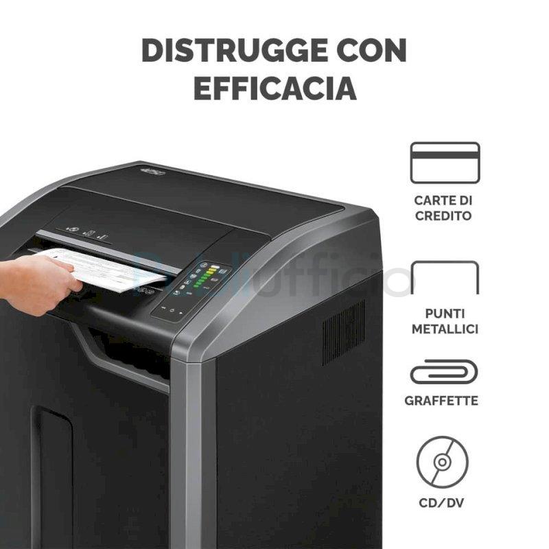 Ideale per uso professionale in uffici con 10 e oltre utenti. Distrugge 30-32 fogli di carta per volta in frammenti da 4x30mm (Livello di Sicurezza P-4). Il Sistema 100% Jam Proof elimina gli inceppamenti ed è efficace anche in caso di situazioni difficili. La tecnologia brevettata SafeSense ferma la distruzione se le mani vengono a contatto con l'imboccatura. Il sistema di risparmio energetico riduce i consumi di energia durante l'uso e spegne la macchina dopo 2 minuti di inattività. Nuovo meccanismo Auto Oil per lubrificare automaticamente le lame ed estendere la performance del distruggidocumenti. Imboccatura da 305mm e motore a ciclo continuo per distruggere senza interruzioni. Design elegante e salvaspazio. Per 20+ utenti. 2 anni di garanzia sulla macchina, 20 sulle lame.