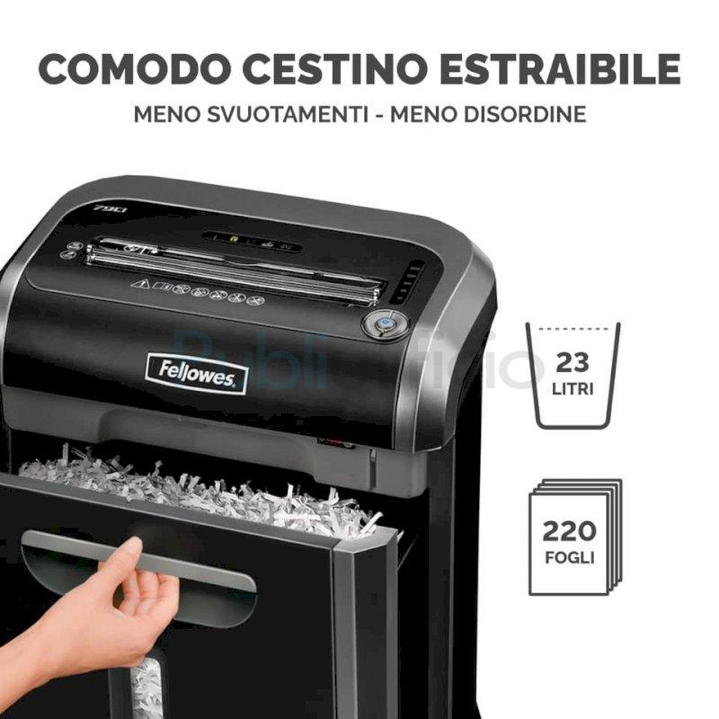 Distruggidocumenti uso moderato FELLOWES Powershred® 79Ci - P-4 - 23 L - taglio a frammenti 4x38 mm - 4679004