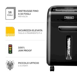Il Sistema 100% Jam Proof elimina gli inceppamenti ed è efficace anche in caso di situazioni difficili. La tecnologia brevettata Safe Sense ferma la distruzione se le mani vengono a contatto con l'imboccatura. Silent Shred minimizza la rumorosità permettendo l'uso in ambienti di lavoro condivisi. Distrugge ininterrottamente fino a 20 minuti. Design moderno e salvaspazio. Distrugge 16 fogli A4 per volta in frammenti da 4x38mm (Livello di Sicurezza P-4). Distrugge carte di credito, graffette, punti metallici e CD. Cestino estraibile da 23 litri. Per 1 - 3 utenti.