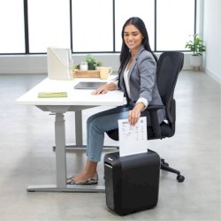 Distruggidocumenti a frammento per uso regolare a casa e nel piccolo ufficio. Distrugge fino a 10 fogli per volta in frammenti di dimensioni 4x40 mm (livello di sicurezza DIN P-4). La tecnologia Safesense® garantisce la massima serenità d’uso, fermando la distruzione se le mani vengono a contatto con l’imboccatura. Distrugge ininterrottamente per 6 minuti prima di un periodo di raffreddamento di 20 minuti. Comodo cestino da 22 litri con testata sollevabile. Distrugge anche punti metallici, graffette e carte di credito. Per uso personale. Garanzia 2 anni macchina, 3 anni lame.