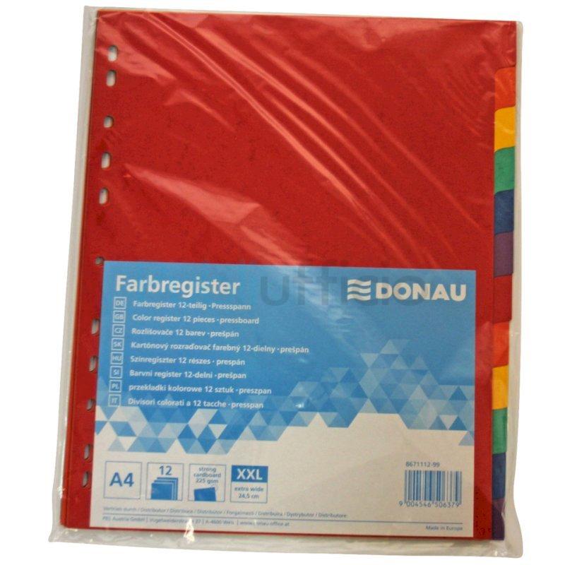 Divisori intercalari A4 Donau in cartoncino 225 g/m² - colori assortiti - conf. 25 x 12 tasti - 330365