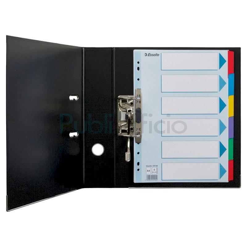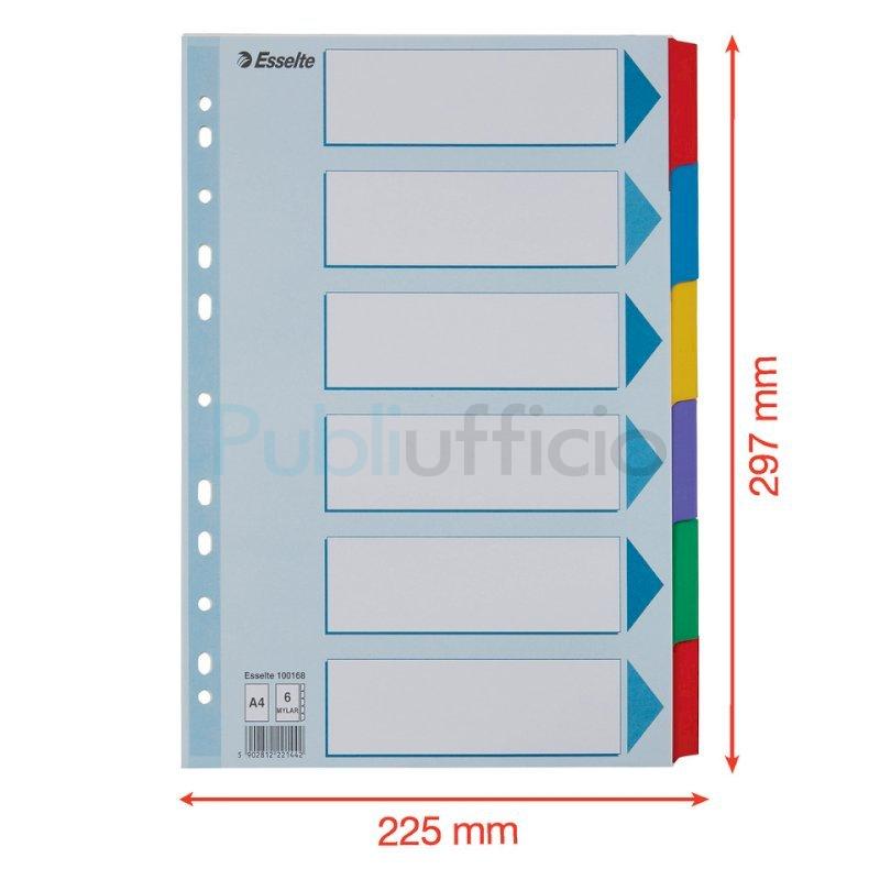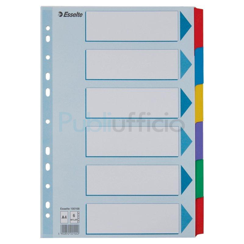Divisori intercalari Esslete Mylar A4 - conf. 20 ff da 6 tasti colorati cad. - 100168