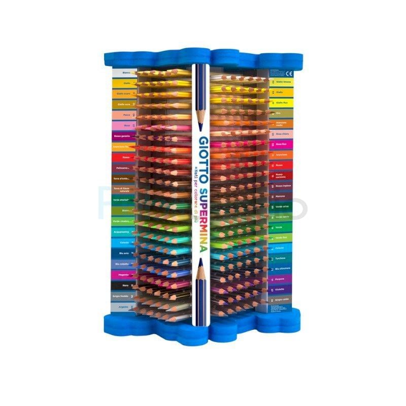 Il nuovissimo espositore Giotto Supermina versatile e super colorato si adatta perfettamente a ogni spazio e consente la visibilità di tutta la gamma cromatica. Offre tre possibilità di esposizione, a seconda delle esigenze di spazio. Fresco e innovativo nei materiali. Un tocco di design per il punto vendita. Contiene 558 matite colorate, Ø 3,8 mm.