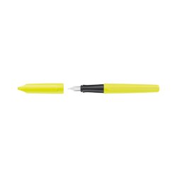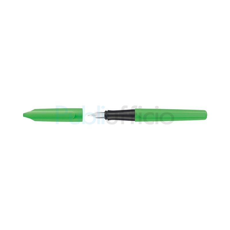 Penna stilografica Happy Pen a cartuccia con pennino in acciaio e impugnatura ergonomica antiscivolo. Espositore composto da 12 modelli assortiti.