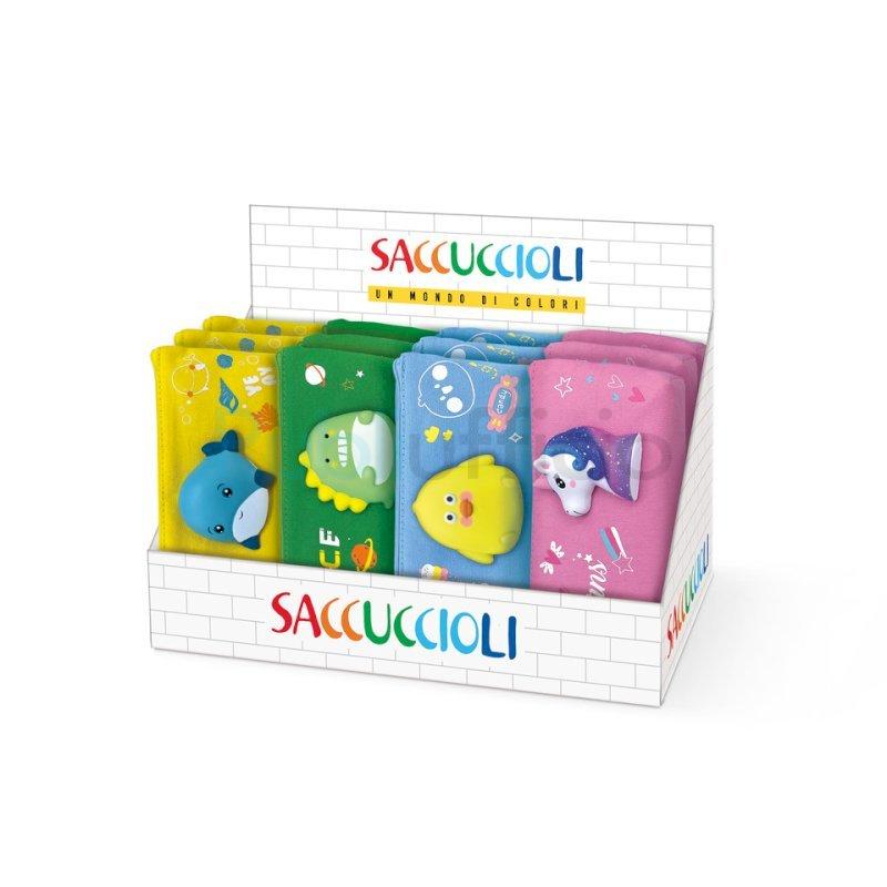 Espositore da banco composto da 12 taschette in tessuto con applicazione Cute Animal Squishy. Formato taschetta: 21 x 9,5 x 3,5 cm. Disponibili in 4 soggetti assortiti.
