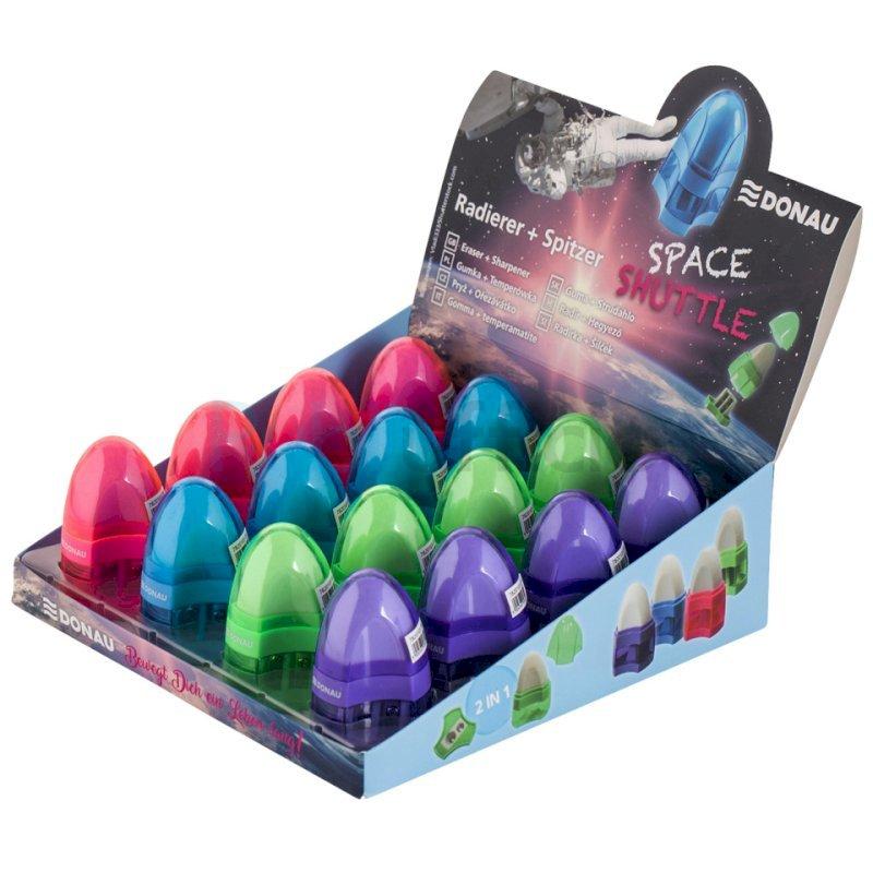 Espositore 16 gomme-temperamatite a 2 fori 2-in-1 Donau a forma di astronave in colori assortiti - 330372916