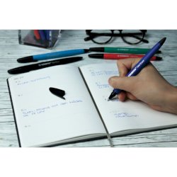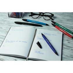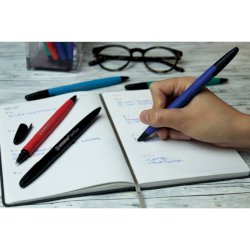 Espositore da banco di penne Stabilo Gel Exxx cancellabili. Tecnologia termo cancellabile. Gomma sul fondello della penna. Il colore dell'inchiostro è identificato dal colore del fusto. Punta ''M'' 0.5 mm. Ricaricabile. Assortimento display: 6 penne blu, 4 nere, 2 rosse, 2 verdi, 1 turchese e 1 rosa.