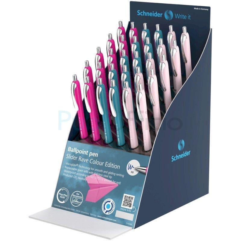 Espositore 30 penne a sfera a scatto ricaricabili Schneider Schneider Slider Rave tratto XB inchiostro blu - P399603