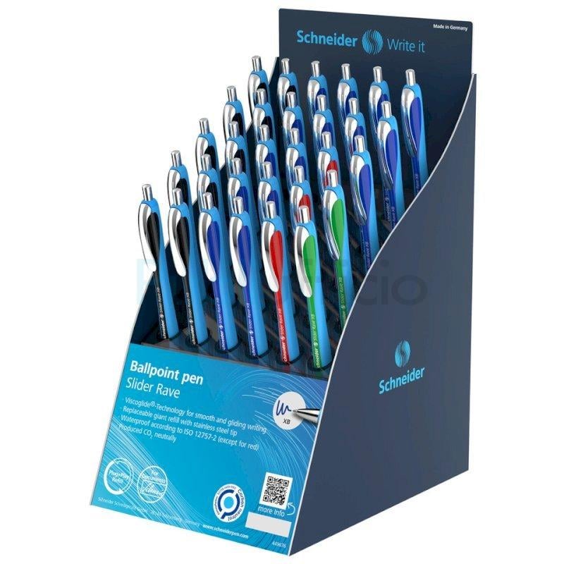 Espositore 30 penne a sfera a scatto ricaricabili Schneider Slider Rave tratto XB - 4 colori assortiti - P304022
