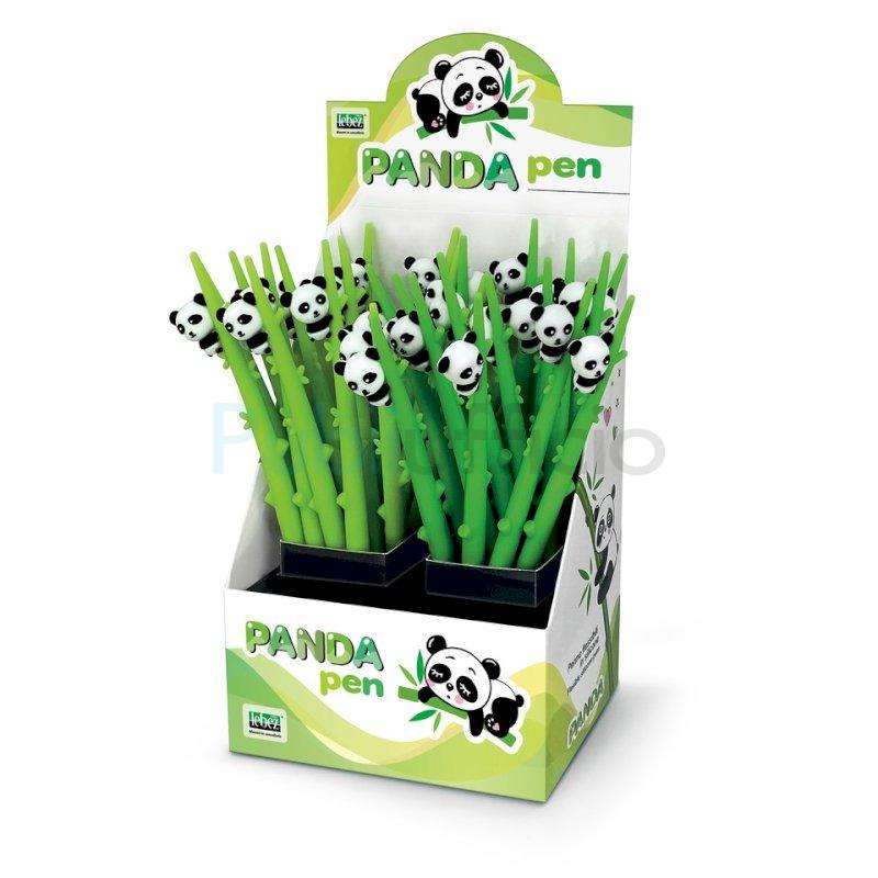 Espositore da banco composto da 36 penne con cappuccio Flexy Panda Pen con fusto flessibile in silicone e fantasia a forma di panda in gomma in testa. Colore inchiostro: blu.