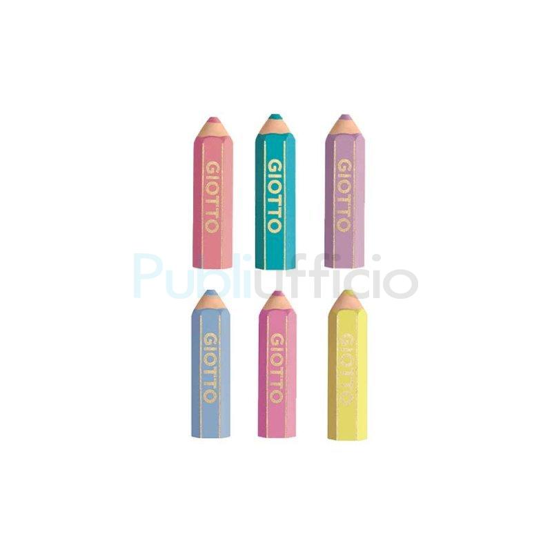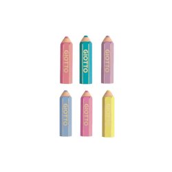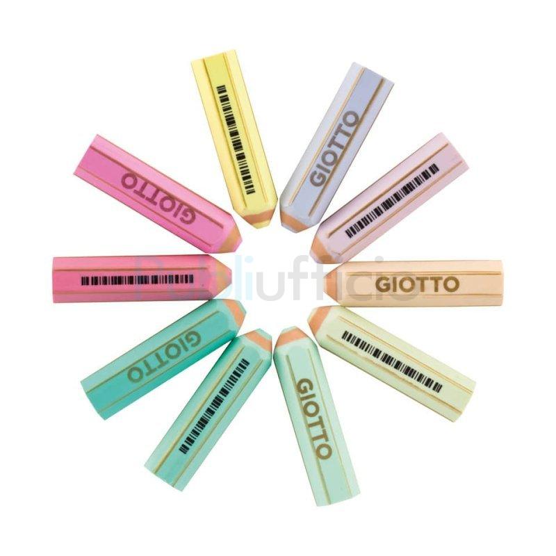 La coloratissima gomma a forma di matita Giotto. Comoda per l'astuccio, sicura, senza ftalati e senza PVC. Disponibile in 10 colori pastello. Espositore da banco da 40 pezzi assortiti.