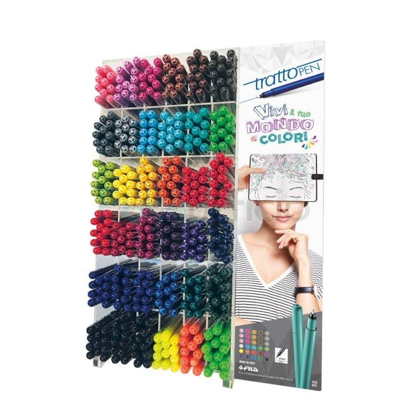 Espositore composto da 432 penne in punta sintetica Tratto Pen in colori assortiti. Dimensioni: 385 x 210 x 300 mm.