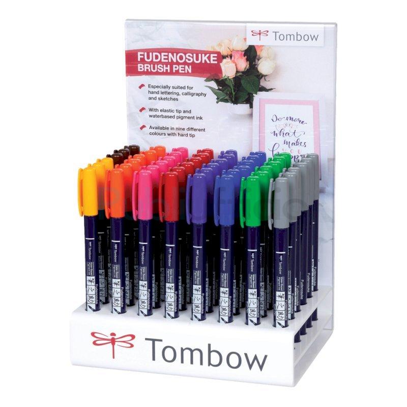 Espositore 48 marker calligrafico Tombow Fudenosuke Fluo punta brush - 6 colori assortiti fluo - PWS-BH-48P-2-A