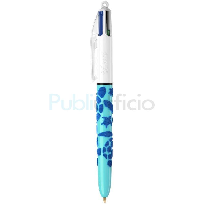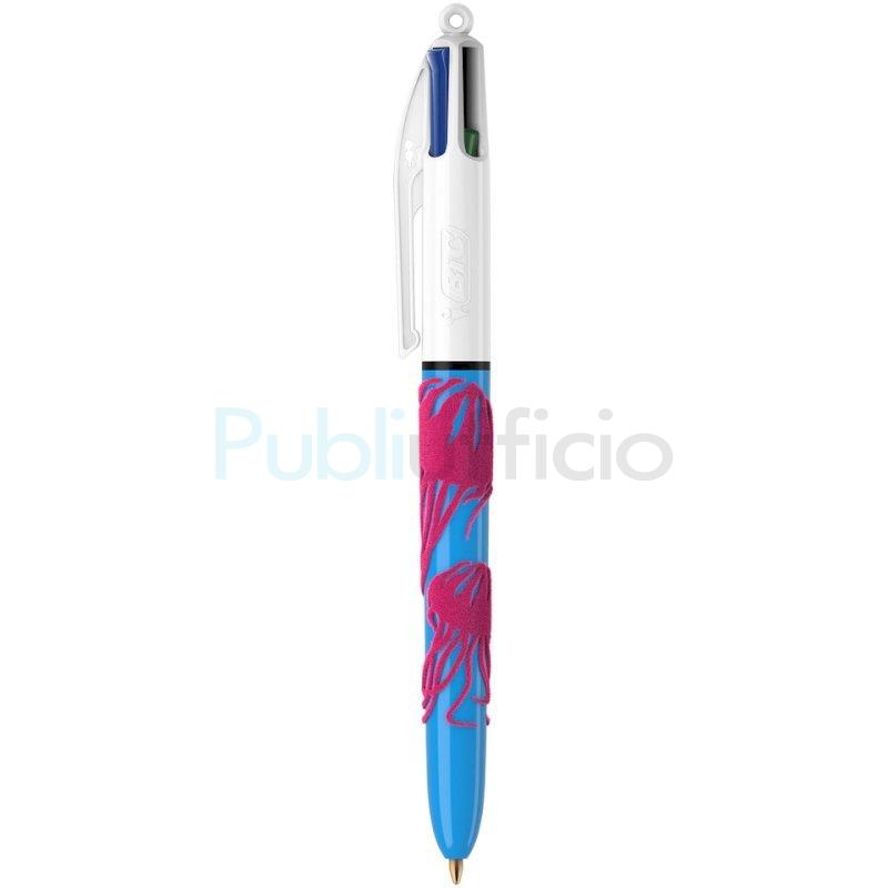 Espositore con assortimento composto da 60 penne a sfera BIC 4 Colours Velours. Caratterizzate da fusti ricoperti da un'esclusiva decorazione in velluto morbido al tatto, disponibili in 3 fantastici temi assortiti: granchi, meduse e tartarughe. Pratica, smart e robusta è una delle penne preferite da ragazzi e studenti, oltre che nel mondo medico e professionale. Grazie alla combinazione di 4 penne in una occupa poco spazio nell'astuccio o sulla scrivania. Basta un clic per cambiare inchiostro! Espositore dal design di grande visibilità e comunicazione.