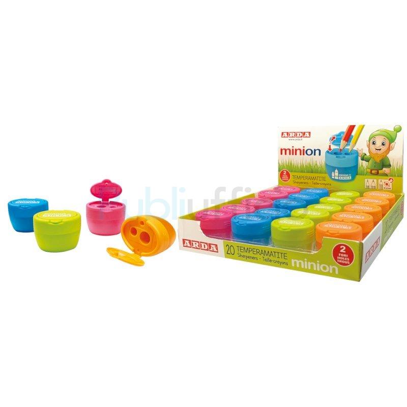 Value pack composto da 4 espositori di temperamatite. Assortimento: 16 pezzi del modello 2Gether, 20 pezzi del modello Smart, 12 pezzi del modello Tris e 12 pezzi del modello Triplo. Inclusi nel prezzo 20 temperamatite Minion.