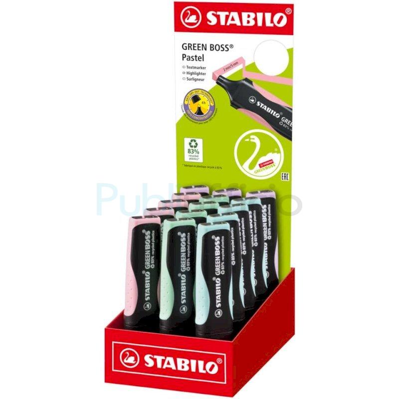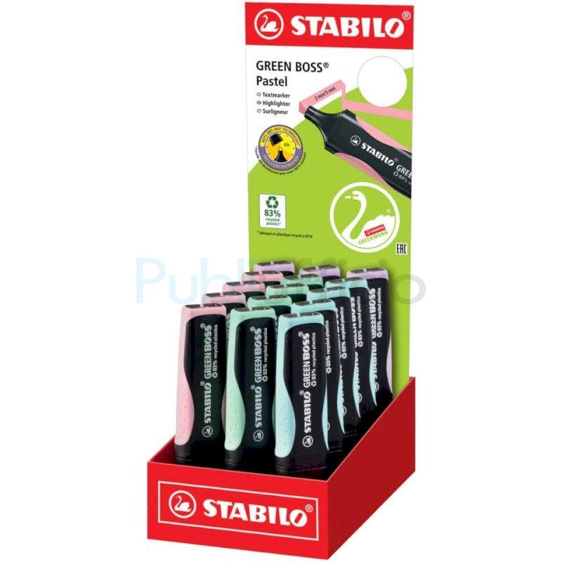 Espositore da banco 15 evidenziatori Stabilo Green Boss Pastel - colori assortiti - 6070/15-2