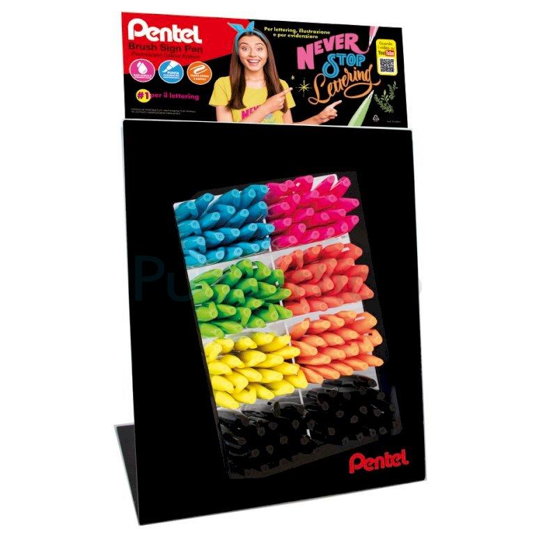 Espositore da banco 80 pennarelli Pentel brush sign pen - colori assortiti 0022425
