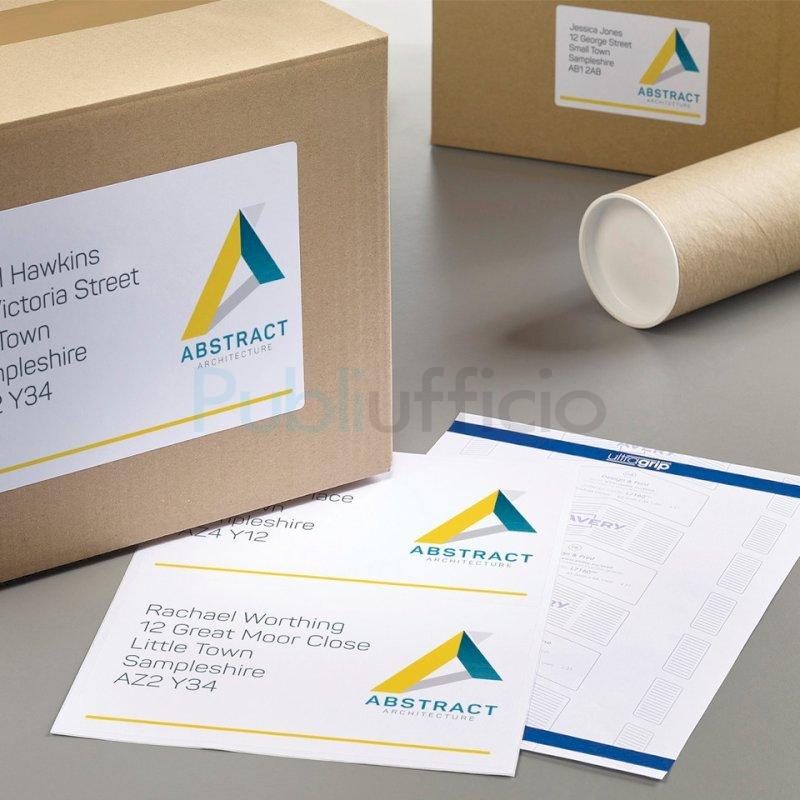Etichette bianche Ultragrip & Jamfree™ laser ad adesivo permanente. Dimensioni: 199,6 x 289,1 mm. N°1 etichette per foglio. Confezione da 50+10 fogli OMAGGIO.