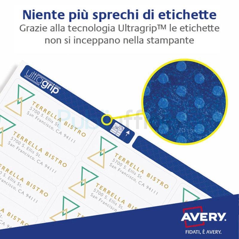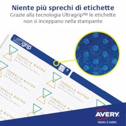 Etichette bianche Avery Ultragrip & Jamfree™ adesivo permanente laser 1 et./foglio conf. 50+10 ff OMAGGIO