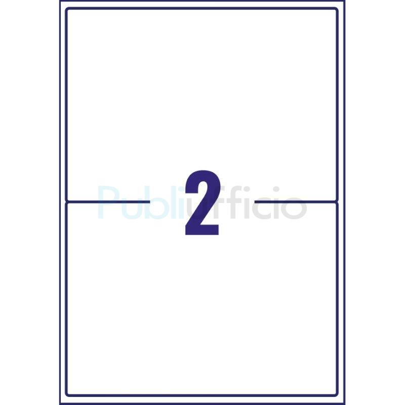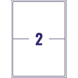 Etichette bianche Ultragrip & Jamfree™ laser ad adesivo permanente. Dimensioni: 199,6 x 143,5 mm. N°2 etichette per foglio. Confezione da 50+10 fogli OMAGGIO.