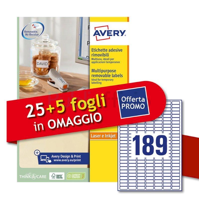 Etichette bianche rimovibili Avery laser/inkjet 189 et./foglio conf.25+5 ff OMAGGIO 25,4x10 mm - L4731REV30P