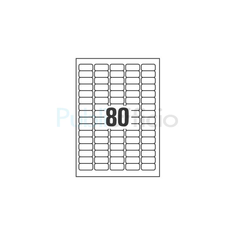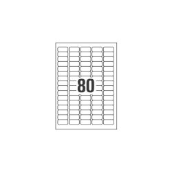 Etichette bianche rimovibili laser/inkjet. Dimensioni: 25,4 x 10 mm. N°189 etichette per foglio. Confezione da 25+5 fogli OMAGGIO.