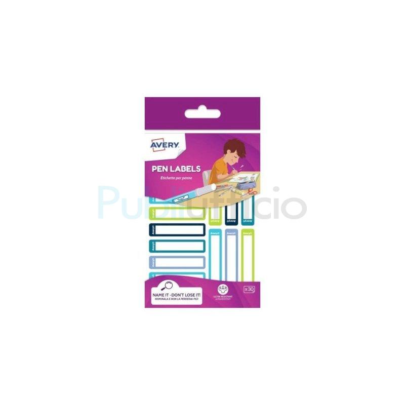 Etichette per penne e matite Avery 50x10 mm - blu/verde - conf. 30 pezzi - RESMI30G-UK