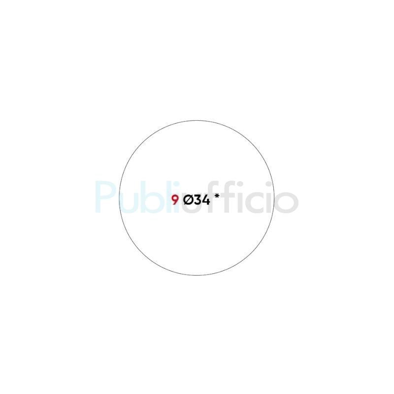 Etichette autoadesive Markin Copiatabu C598 bianche con collante permanente su foglio. Adatte per stampanti Laser, Inkjet e fotocopiatrici. Confezione da 10 blister da 10 fogli, formato diametro 34 mm, bianche.