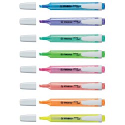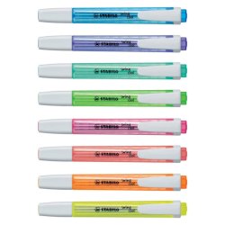 Evidenziatore a tampone con comoda clip. Ideale per ragazzi e studenti. Con la tecnologia STABILO Anti-Dry-Out resiste fino a 4 ore senza cappuccio. Doppia ampiezza tratto 1+4 mm.