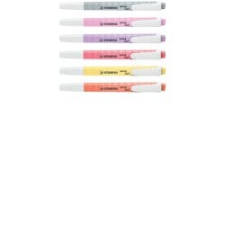 Evidenziatore a tampone con comoda clip ideale per ragazzi e studenti. Con la tecnologia STABILO Anti-Dry-Out resiste fino a 4 ore senza cappuccio. Doppia ampiezza tratto 1+4 mm. Colore arancione papaya.