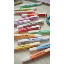 Evidenziatore a tampone con comoda clip ideale per ragazzi e studenti. Con la tecnologia STABILO Anti-Dry-Out resiste fino a 4 ore senza cappuccio. Doppia ampiezza tratto 1+4 mm. Colore azzurro ghiaccio.