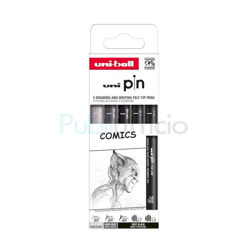 Fineliner Pin Comics Uni Mitsubishi - conf. 12 pz - punte assortite M PIN ASP019