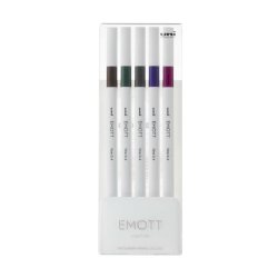 Fineliner dal design innovativo. Il suo fusto bianco raffinato e l'indicatore di colore sono in perfetto equilibrio e lasciano inalterata l'immagine di eleganza di Emott. Forma del fusto quadrata con bordi arrotondati che consente una facile presa e una sensazione di comfort durante la scrittura. La punta è durevole e dotata di un rivestimento esterno che conferisce massima resistenza e lunga durata mantendo inalterato lo spessore sottile del tratto. Inchiostro pigmentato a base d’acqua che resiste all'acqua e alla luce. Punta 0,4 mm. Astuccio 5 colori assortiti. Colori calmi e profondi.