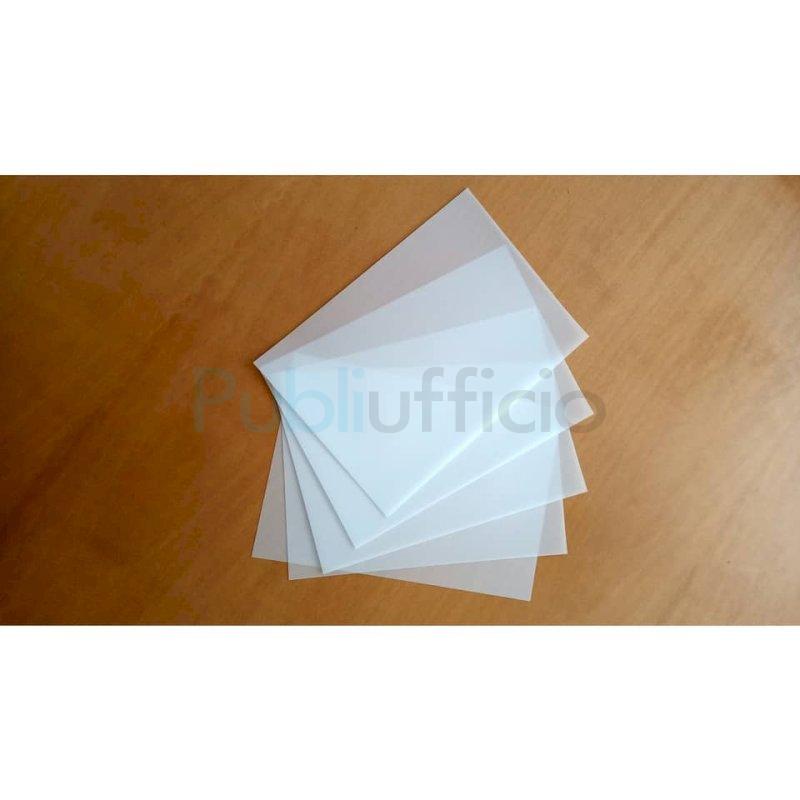 Fogli per stampe in alta qualità, appositamente studiati per i nostri espositori retroilluminati a led. I fogli sono realizzati in backlite poliestere trasparente opaco, spessore 140 micron, stampabili con stampanti laser. Grammatura 195 g/m². Formato A4 in confezioni da 100 fogli. Dimensioni: 21x29,7.